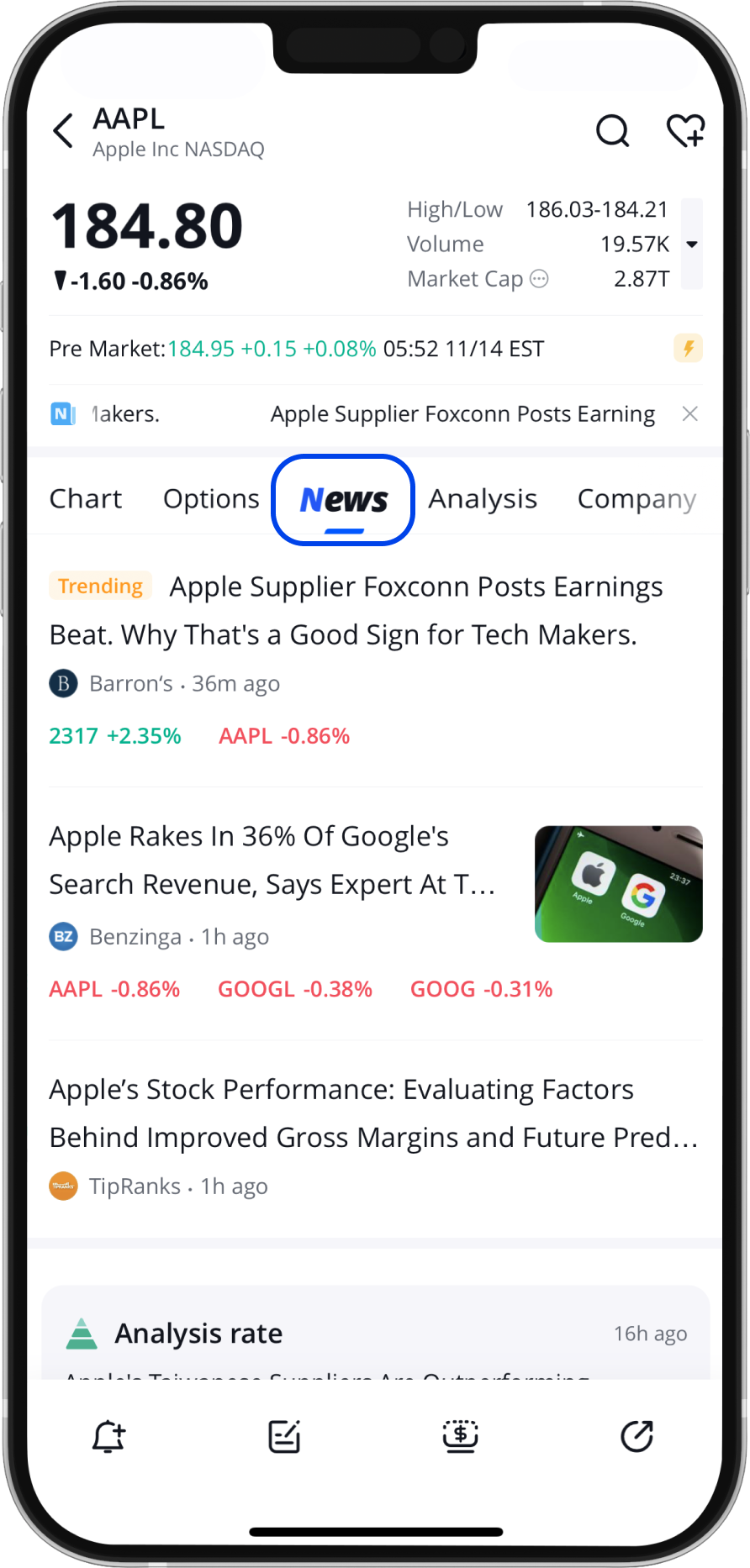 • Check the news: Webull provides the latest news on the market or a specific company.
