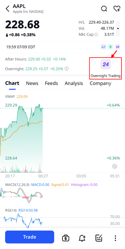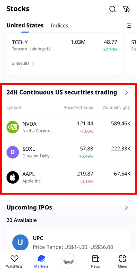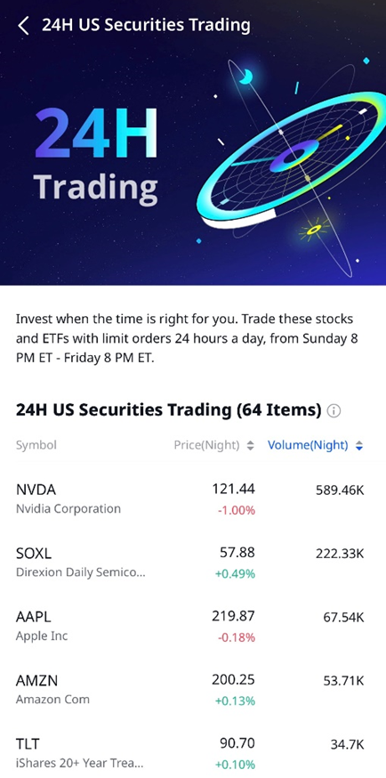 2. 24-Hour Trading is available for select US stocks and ETFs.