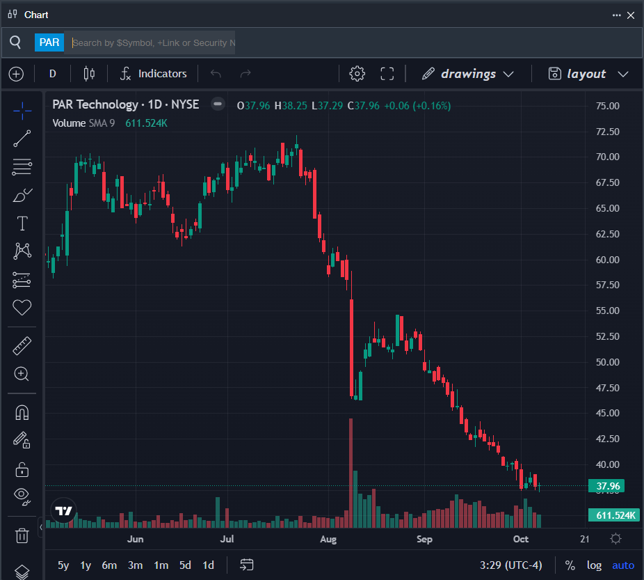 • Benzinga Pro’s charting tool helped identify the trend in PAR stock.
