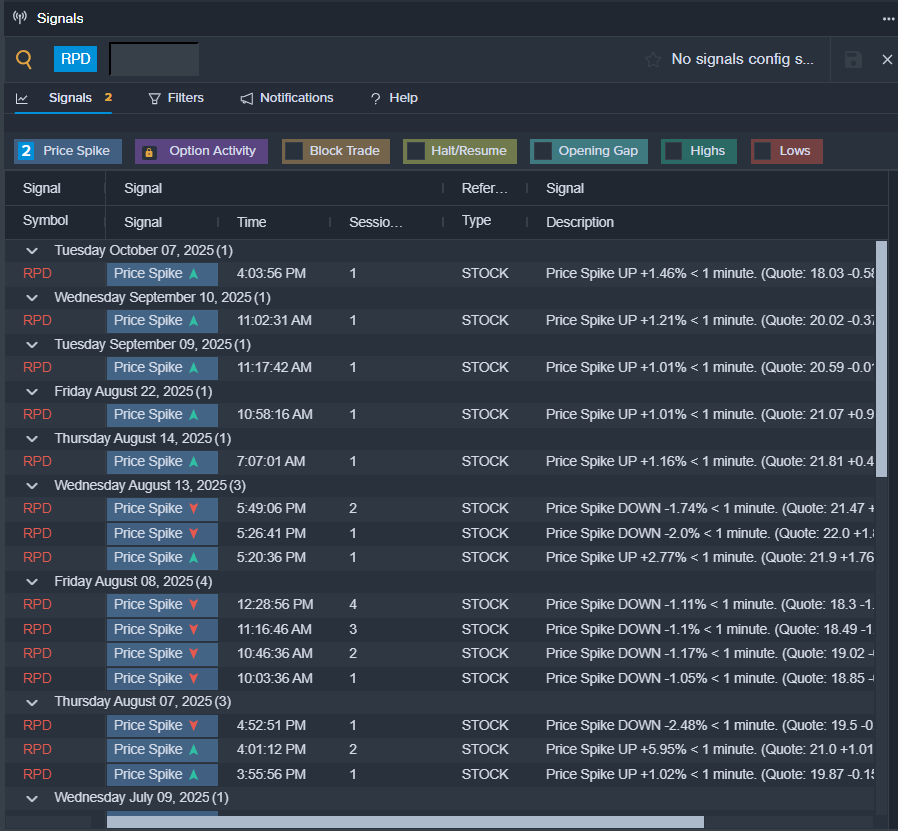 • Benzinga Pro’s signals feature notified of a potential breakout in RPD shares.