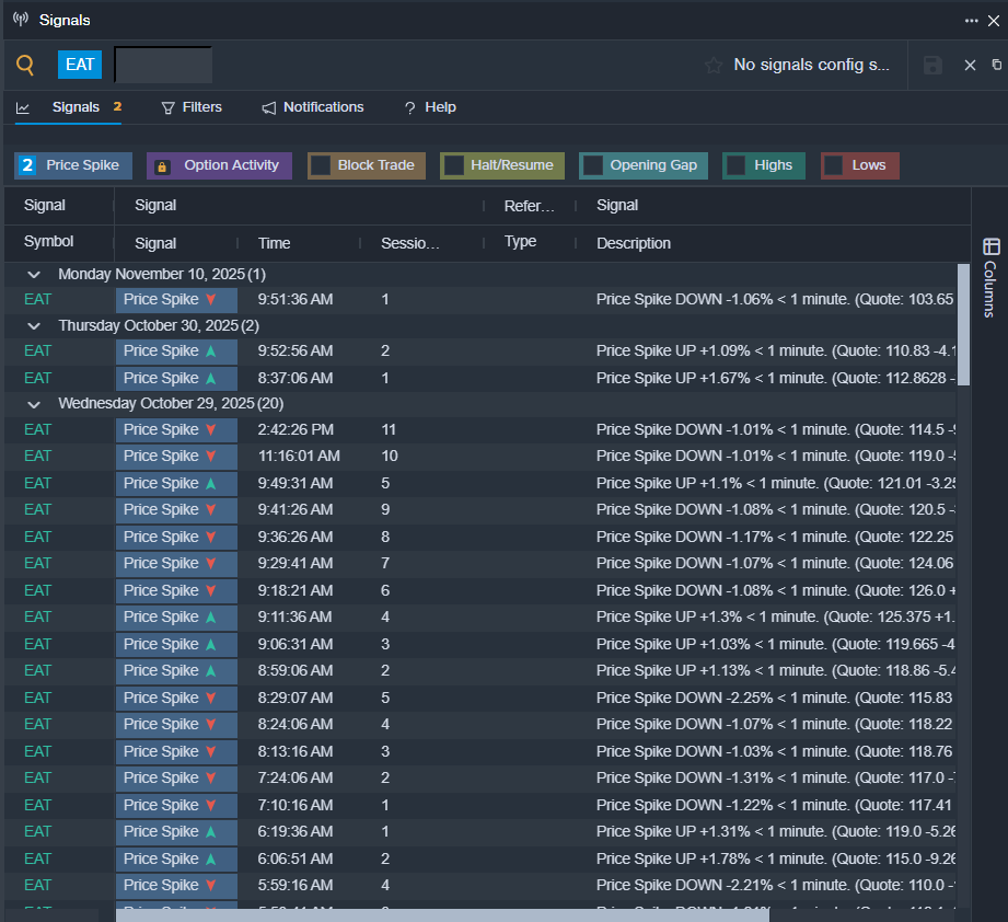• Benzinga Pro’s signals feature notified of a potential breakout in EAT shares.