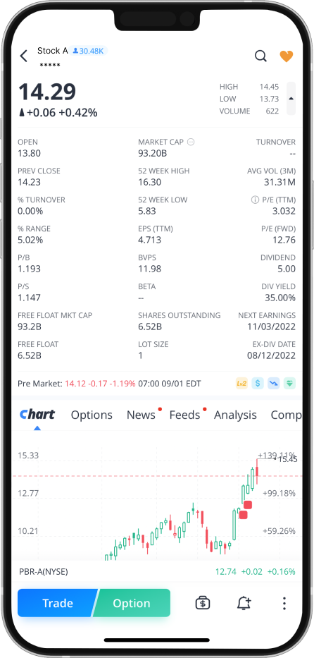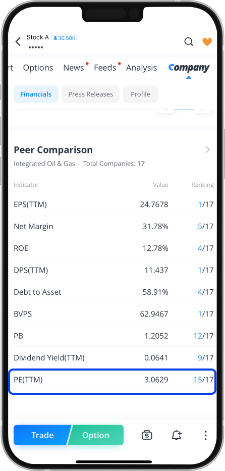 Webull มีฟีเจอร์ “Peer Comparison” ที่ช่วยให้นักลงทุนสามารถเปรียบเทียบอันดับของบริษัทที่สนใจกับคู่แข่งในอุตสาหกรรมเดียวกันได้ ดูอันดับของหุ้นเพื่อพิจารณาว่าหุ้นนั้นมีมูลค่าที่เหมาะสมหรือไม่