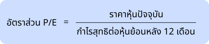 อัตราส่วน P/E คือการคำนวณราคาตลาดต่อกำไรสุทธิของบริษัท ซึ่งใช้ข้อมูลจากงบการเงินย้อนหลัง 12 เดือน (TTM)