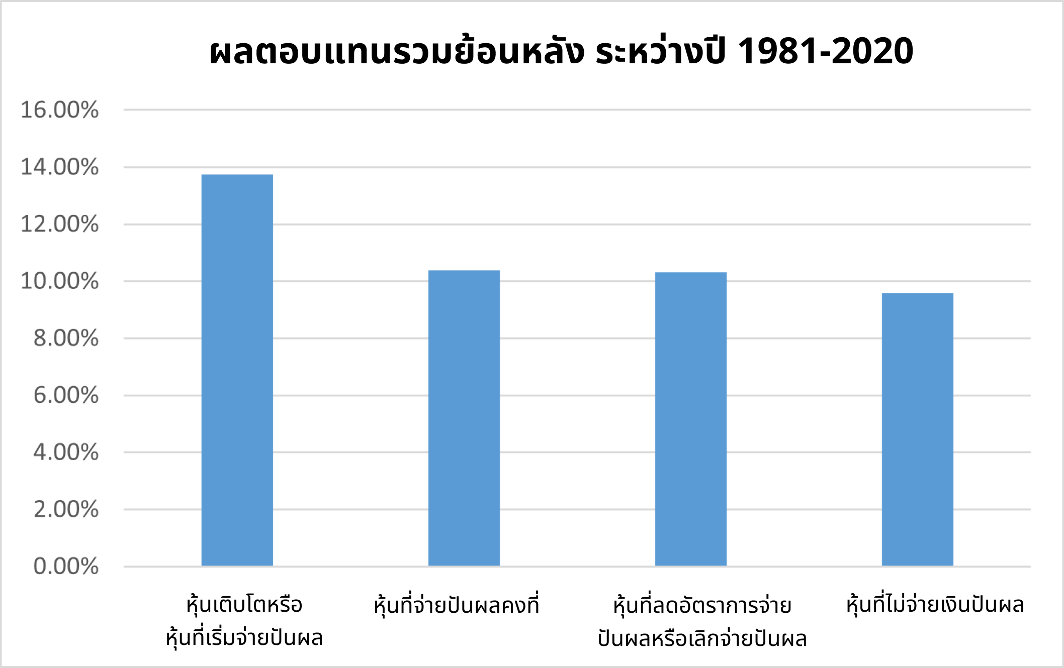 จากข้อมูลการวิจัยพบว่า หุ้นที่เพิ่มอัตราการจ่ายเงินปันผลอย่างต่อเนื่อง มักจะทำรายได้ที่สูงกว่ากลุ่มหุ้นที่จ่ายเงินปันผลในอัตราเท่าเดิม ลดเงินปันผล หรือไม่จ่ายเงินปันผลเลย