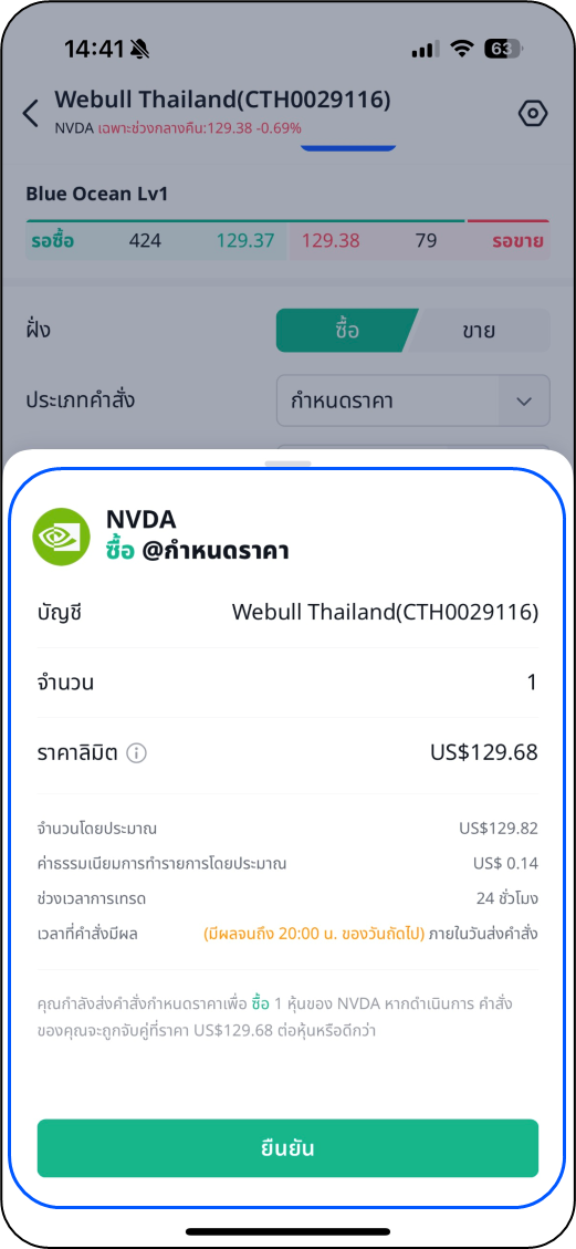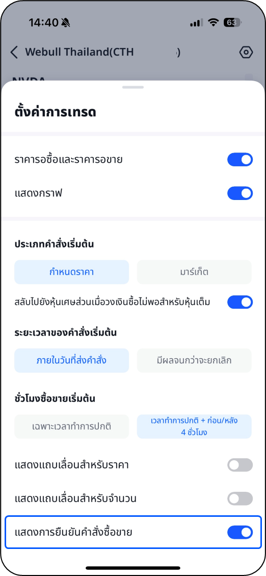 แสดงการยืนยันคำสั่งซื้อขาย