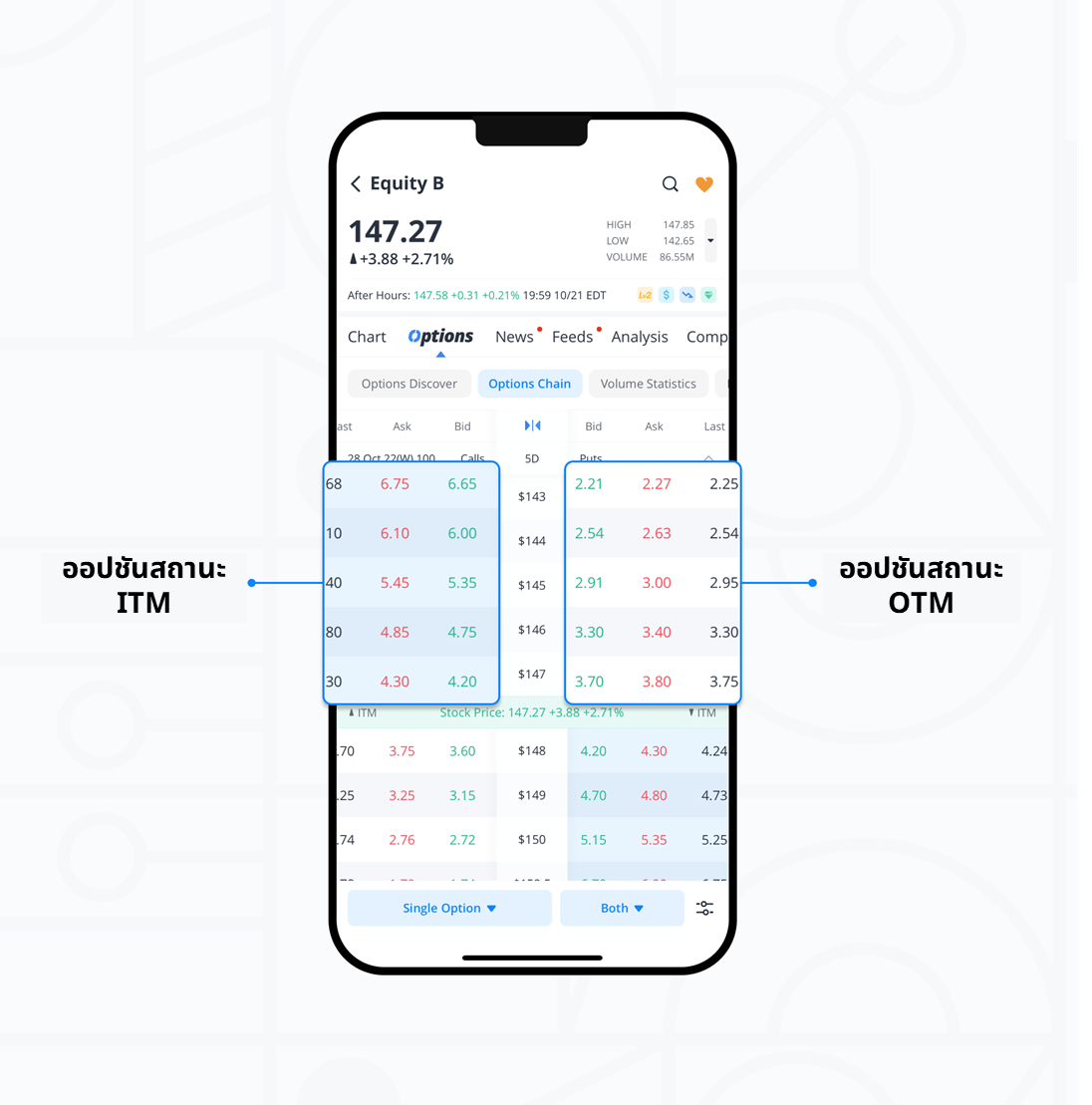 • ออปชันที่อยู่ในสถานะ In-the-money (ITM) และ Out-of-the-money (OTM)