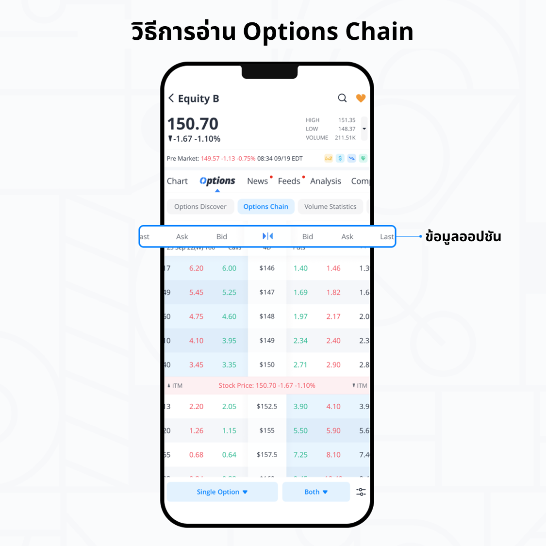 3. ทำความเข้าใจวิธีอ่านข้อมูลราคาออปชันบน Options Chain
