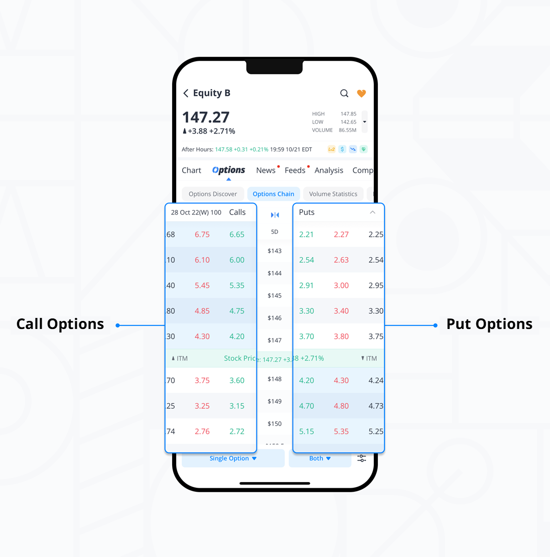 ไม่ว่าคุณจะเทรดผ่านแอปพลิเคชันใด นักลงทุนมักจะปรับแต่งรูปแบบการแสดงข้อมูลให้เป็นในแบบที่พวกเขาสะดวกต่อการใช้งาน บนแอปพลิเคชัน Webul คุณสามารถปรับแต่ง Options Chains ให้เหมาะกับสไตล์การเทรดของคุณได้ดังต่อไปนี้