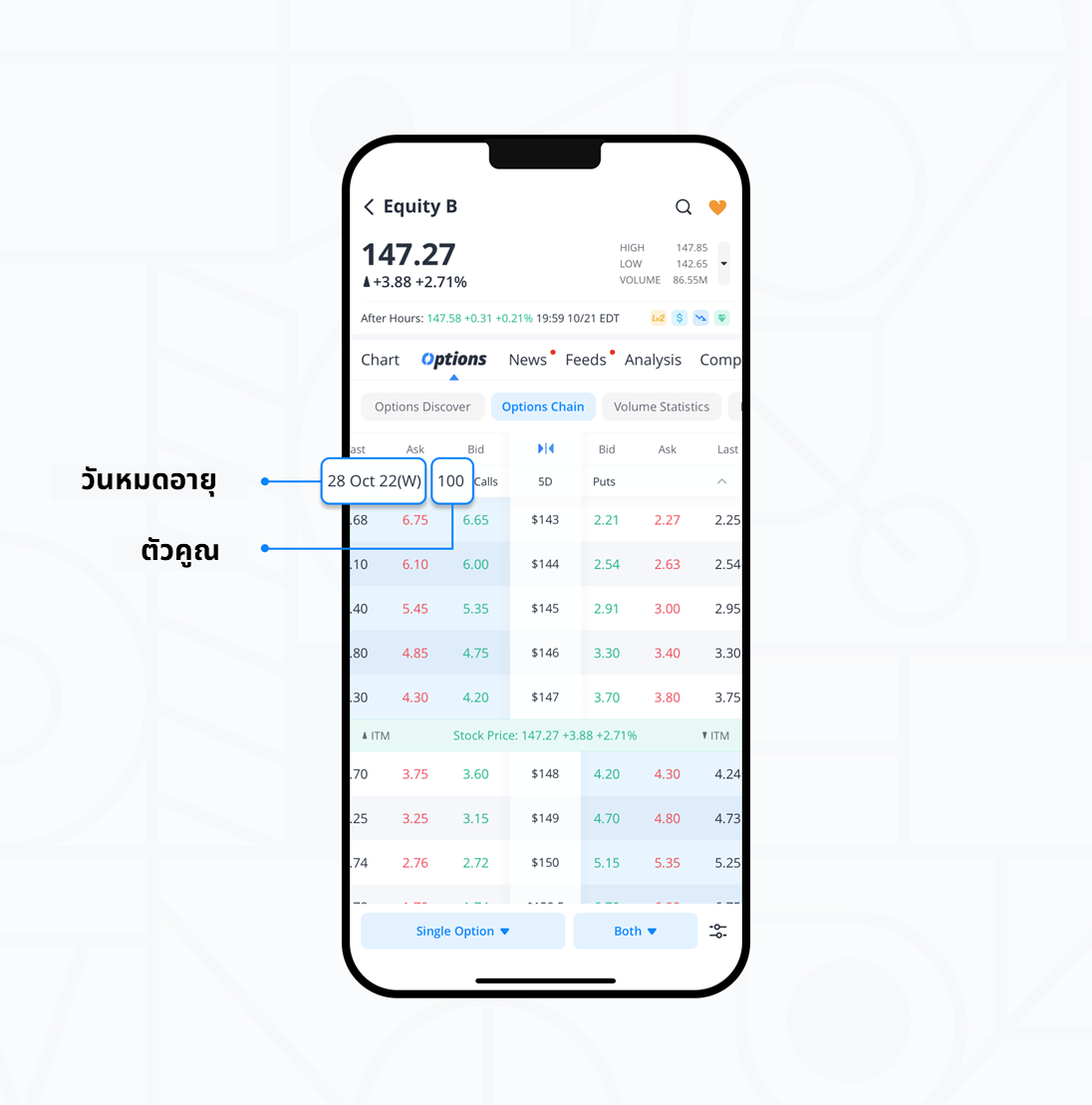วิธีการอ่านราคาออปชันบน Options Chain