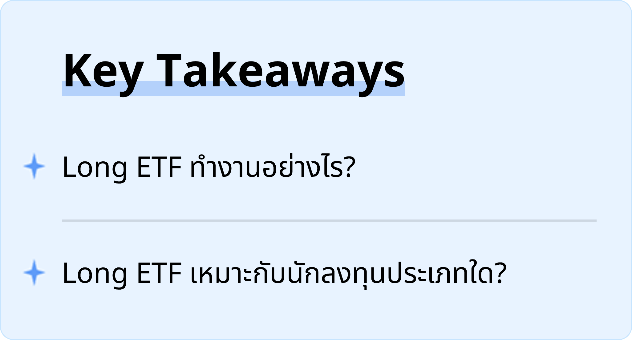 Long ETF อาจเป็นตัวเลือกการลงทุนที่เหมาะสมสำหรับนักลงทุนที่ต้องการทำกำไรในช่วงตลาดขาขึ้น