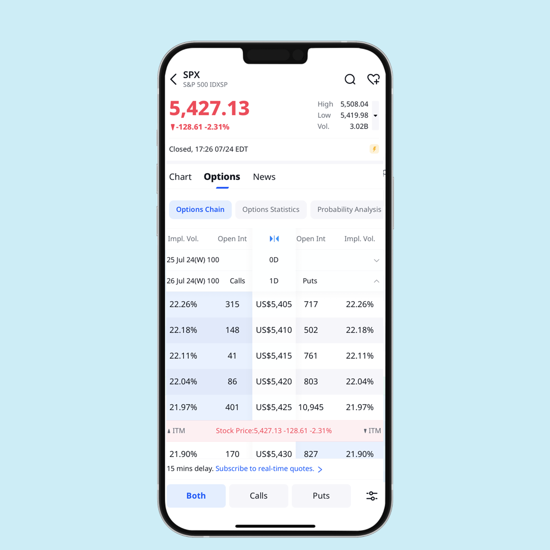 หากดูที่ Options Chain ของดัชนี S&P500 (SPX) จะพบว่าสถานะคงค้างของ Put Option มีปริมาณสูงกว่าสถานะคงค้างของสัญญา Call Option ซึ่งบ่งบอกถึงความเชื่อมั่นของนักลงทุนที่ถือครองออปชัน SPX เหล่านี้ ซึ่งมองว่าราคาดัชนี S&P500 จะอยู่ในระดับที่ต่ำกว่าราคาใช้สิทธิ พวกเขาจึงเลือกถือครอง Put Optionมากกว่า Call Option
