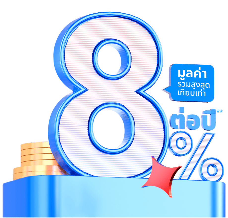 ฝากเงินตอนนี้ เพื่อรับสิทธิประโยชน์ มูลค่ารวมสูงสุด เทียบเท่า 8% ต่อปี ภายใน 31 ธันวาคมนี้ เท่านั้น